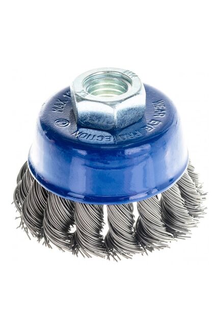 Кордщетки чашеобразные витые. Серия "Мастер". Кордщетка для угловых шлифмашин. Резьбовая посадка на шпиндель. Витая стальная проволока. Для грубой обработки дерева, снятия краски, шлифовки толстого металла, снятия ржавчины, окалины, обработки сварных швов. Витая кордщетка 65 мм с посадкой М14 для УШМ — быстрое очищение металла от ржавчины, окалины и налёта благодаря высокой износостойкости.