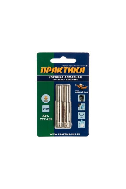 Откройте новые горизонты точной и аккуратной работы с керамикой, кафелем и стеклом – с алмазной коронкой 8 мм от ПРАКТИКА (артикул 777-239) каждый ваш проект будет выполнен на профессиональном уровне!