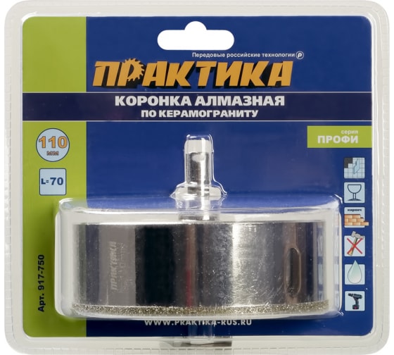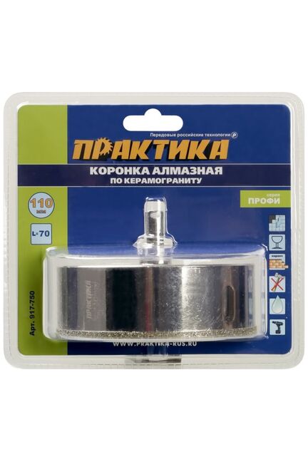 Коронка алмазная по керамограниту/керамике ПРАКТИКА "Профи" 110*70 мм, пилотное сверло