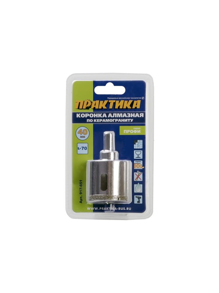 Коронка алмазная по керамограниту/керамике ПРАКТИКА "Профи" 40*70 мм, пилотное сверло в Комсомольск-на-Амуре