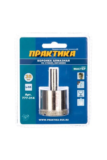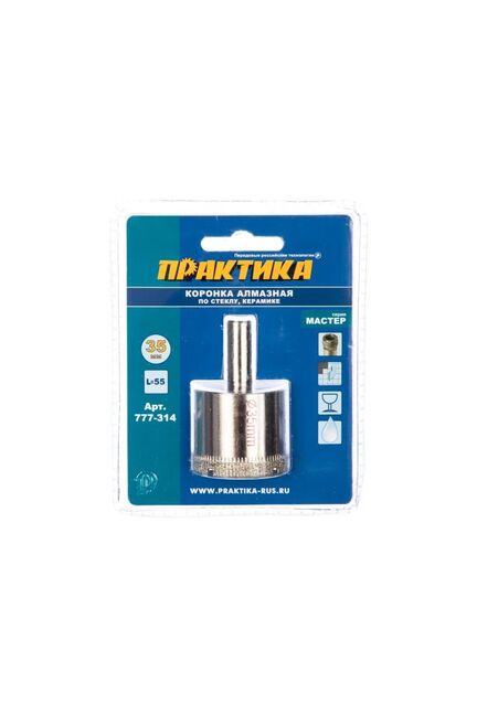 Коронка алмазная по стеклу и керамике ПРАКТИКА "Мастер" 35 мм