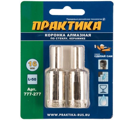 Коронка алмазная по стеклу и керамике ПРАКТИКА "Сделай сам" 16 мм, 2 шт в Комсомольск-на-Амуре