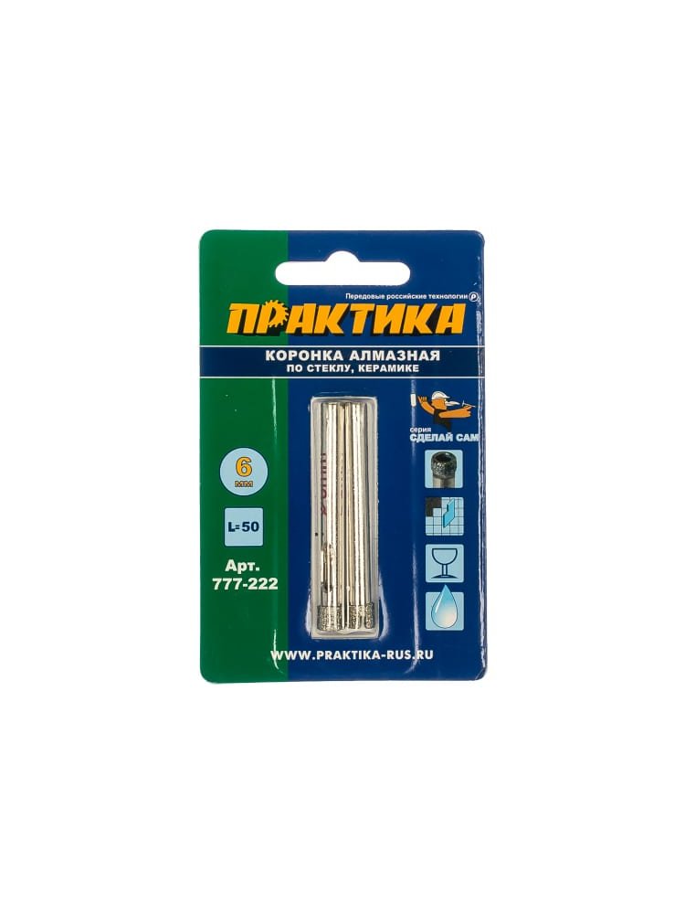 Коронка алмазная по стеклу и керамике ПРАКТИКА "Сделай сам" 6 мм, 2 шт в Комсомольск-на-Амуре