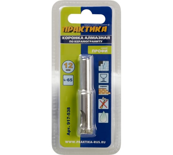 Коронки алмазные по керамограниту. Серия "Профи". Коронка алмазная (сверло трубчатое) предназначена для сверления керамогранита, керамической плитки, изделий из керамики. Ограниченно подходит для сверления толстого стекла. Трубчатые сверла диаметром 5-14мм не имеют направляющего сверла, потому рекомендуется работать с помощью направляющего кондуктора. Коронки диаметром 16-120 имеют направляющее твердосплавное сверло по плитке для сверления мягкой керамики и облицовочной плитки без кондуктора. При сверлении керамогранита направляющее сверло необходимо снять, воспользовавашись кондуктором или производя засверливание под углом. Запрещено работать в ударном режиме и без охлаждения водой. Необходимо ограничивать скорость подачи и частоту оборотов во избежание перегрева коронки. Для работы лучше всего использовать аккумуляторную дрель имеющую высокий крутящий момент в сочетании с невысокими оборотами. Использовать охлаждение водой. Рекомендуемая частота оборотов от 150 до 1000 об/мин в зави