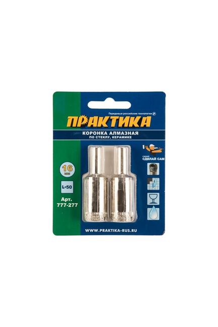 Коронка алмазная по стеклу и керамике ПРАКТИКА "Сделай сам" 16 мм, 2 шт