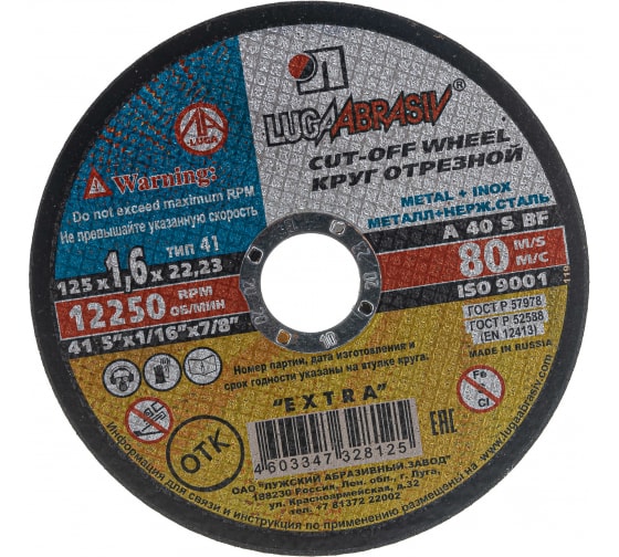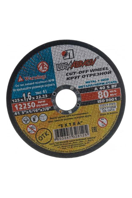 Круг отрезной по металлу и нерж. ЛУГА Extra 125*1,4*22мм
