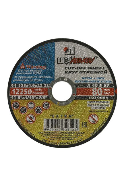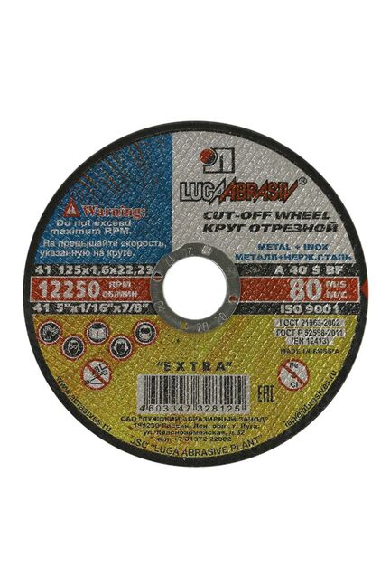 Круг отрезной по металлу и нерж. ЛУГА Extra 125*1,6*22мм