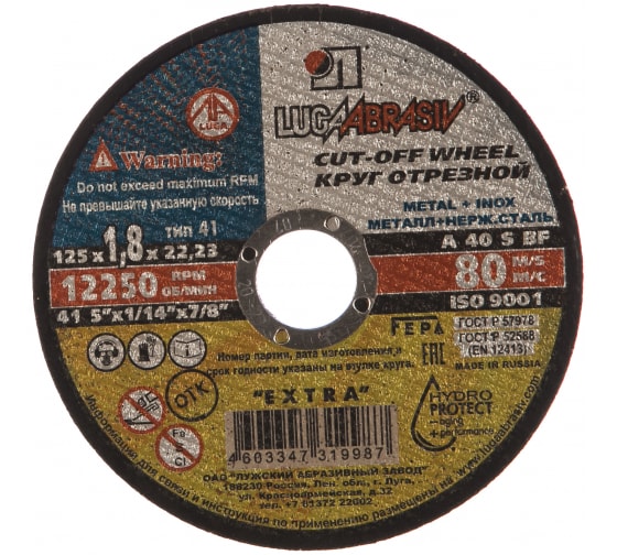 Круг отрезной по металлу и нерж. ЛУГА Extra 125*1,8*22мм