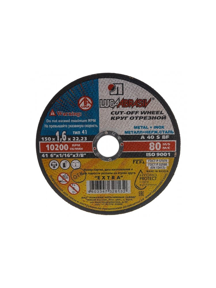 Круг отрезной по металлу и нерж. ЛУГА Extra 150*1,6*22мм