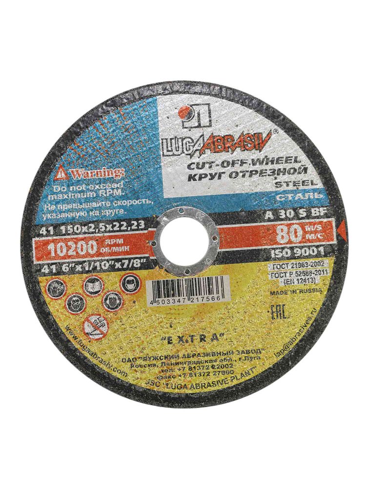 Круг отрезной по металлу и нерж. ЛУГА Extra 150*2,5*22мм