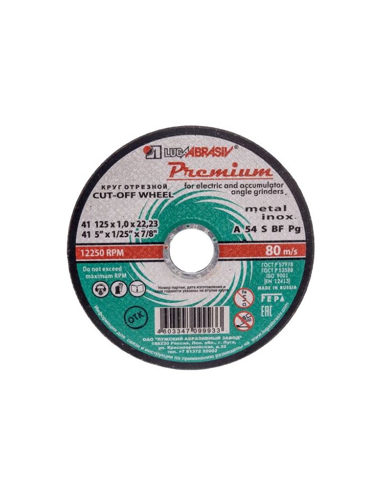 Круг отрезной по металлу и нерж. ЛУГА Premium 125*1,0*22мм