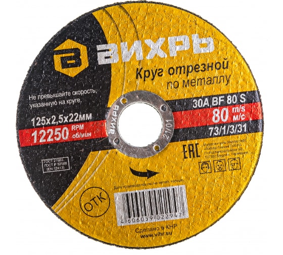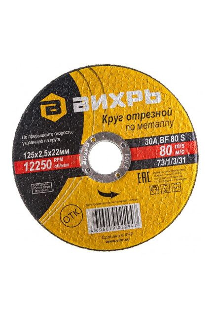 Круг отрезной по металлу ВИХРЬ 125х2,5х22 мм в Комсомольск-на-Амуре