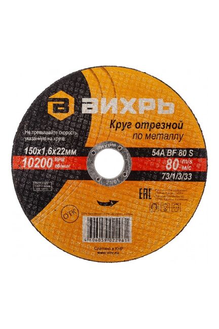 Круг отрезной по металлу ВИХРЬ 150х1,6х22 мм в Комсомольск-на-Амуре