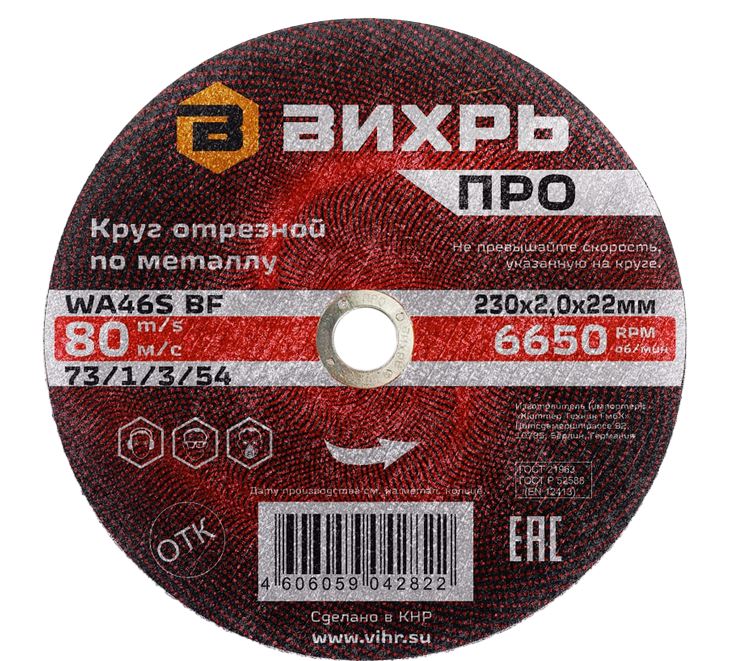Круг отрезной по металлу Вихрь ПРО 230х2,0х22 мм предназначен для использования в углошлифовальных машинах при резке таких материалов как сталь, чугун, нержавеющая сталь и другие.