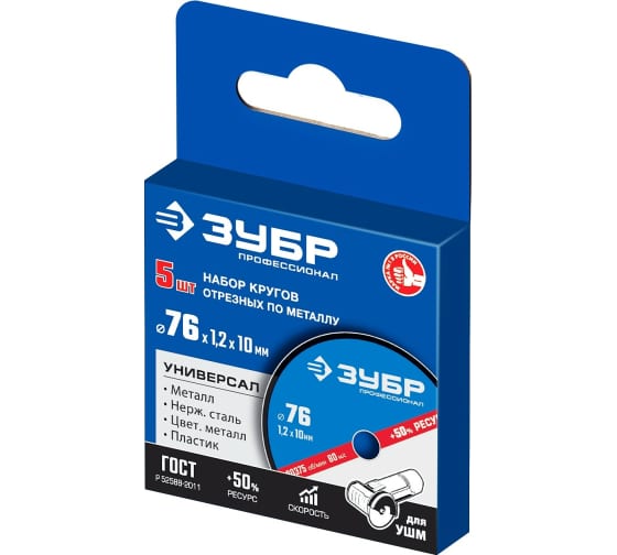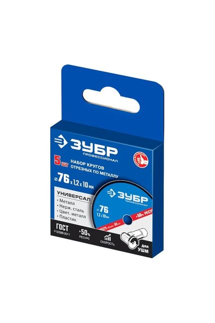 Круг отрезной по металлу ЗУБР 76*1,2*10мм, 5шт.