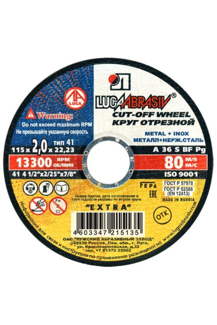 Круг отрезной по металлу и нерж. ЛУГА Extra 115*2,0*22мм в Комсомольск-на-Амуре
