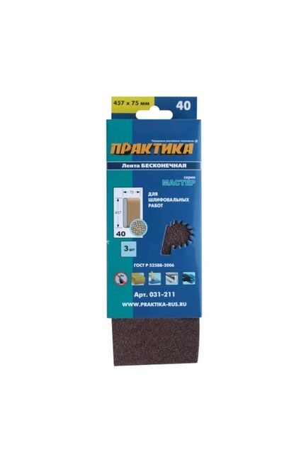 Лента шлифовальная ПРАКТИКА 75*457 мм (P40), 3 шт в Комсомольск-на-Амуре