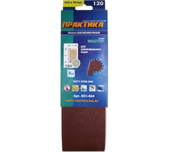 Лента шлифовальная ПРАКТИКА 75*533 мм (P120), 3 шт в Комсомольск-на-Амуре