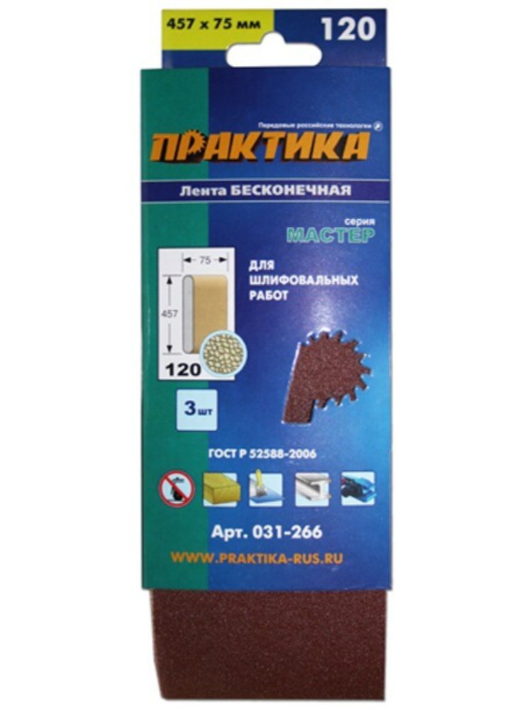 Лента шлифовальная ПРАКТИКА 75x457 мм (Р120), 3шт