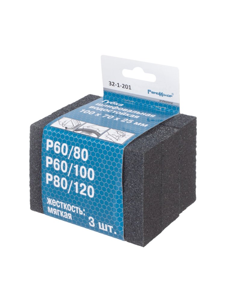 Набор губок для шлифования РемоКолор карбид кремния, Р60/80, Р60/100, Р80/120, 100х70х25мм 3шт в Комсомольск-на-Амуре