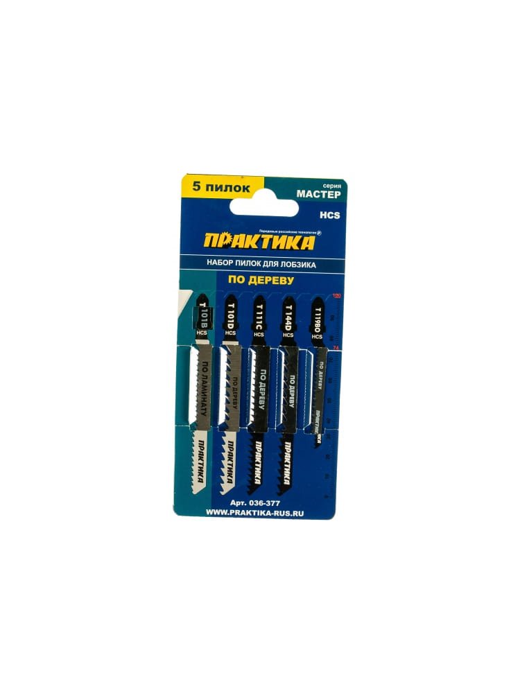 Набор пилок для лобзика ПРАКТИКА по дереву 5 типов, 5шт