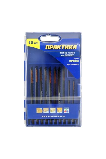 Набор пилок для лобзика ПРАКТИКА по дереву, 7 типов, 10 шт