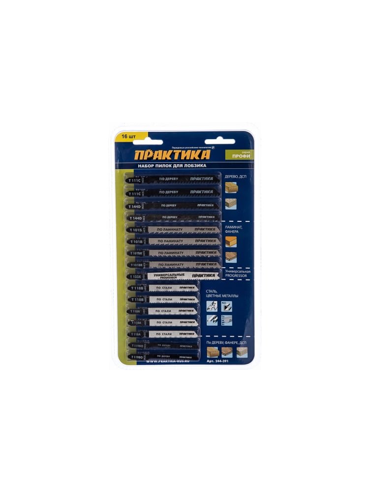 Набор пилок для лобзика ПРАКТИКА универсальный, 8 типов, 16 шт в Комсомольск-на-Амуре