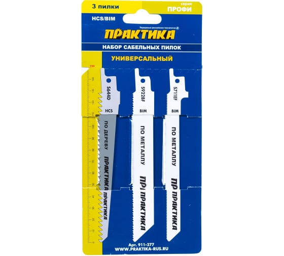 Набор пилок для сабельных пил универсальный ПРАКТИКА S711EF/S922BF/S644D 150 мм, 3 шт