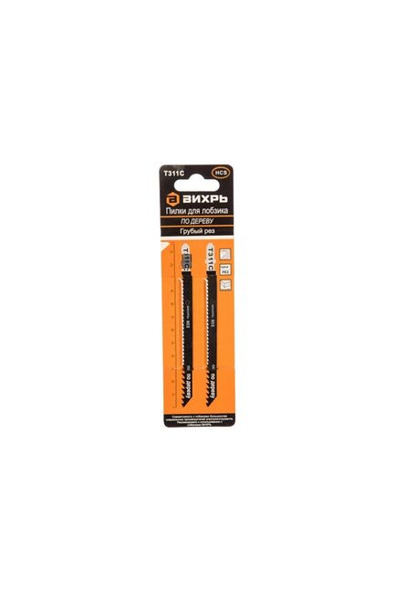 Пилки для лобзика ВИХРЬ Т311C по дереву,грубый рез 126х100мм, 2шт