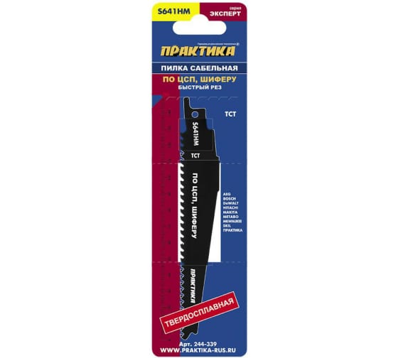 Пилки для лезвийной пилы твердосплавные ПРАКТИКА S641HM 4*150 мм, по ЦСП, шиферу, дереву