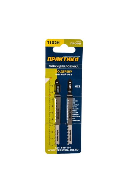 Пилки для лобзика по дереву, ДСП ПРАКТИКА тип T102H 100х75 мм, чистый рез, 2шт
