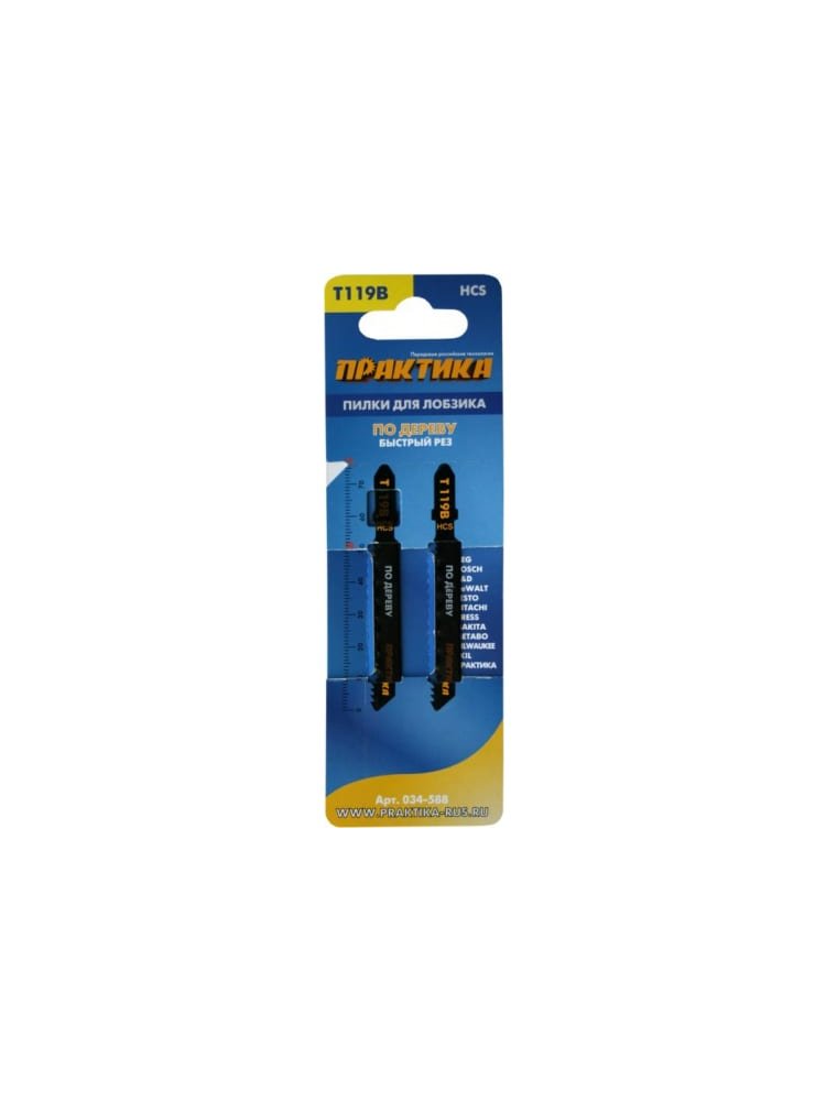 Пилки для лобзика по дереву, ДСП ПРАКТИКА тип T119B 76х50 мм, грубый рез, 2шт