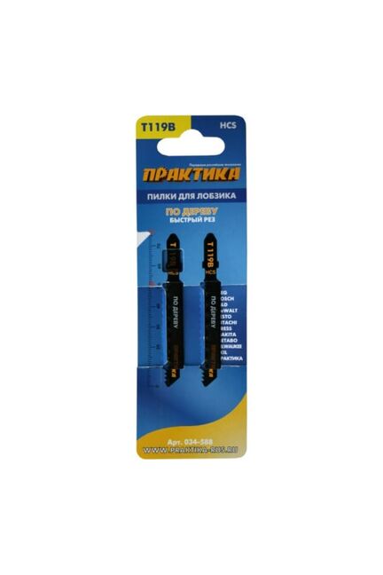 Пилки для лобзика по дереву, ДСП ПРАКТИКА тип T119B 76х50 мм, грубый рез, 2шт