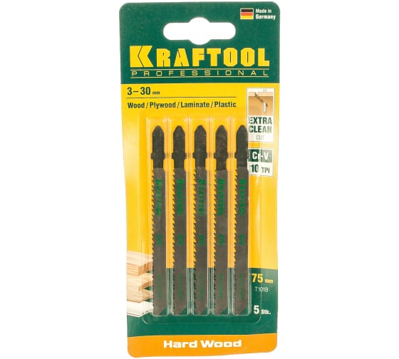 Пилки для электролобзика,Cr-V,по дереву,ДСП,ДВП,чистый рез,EU-хвостовик,шаг 2,5 мм, 75 мм, 5 шт.
