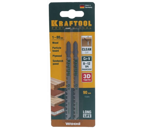 Надежный набор сменных полотен длиной 90 мм и шагом 3 мм для лобзика электрического 159506-U фирмы KRAFTOOL,