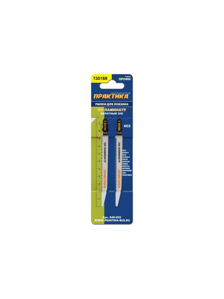 Пилки для лобзика по ламинату ПРАКТИКА дереву, ДСП, тип T301BR 117х91 мм, обратный зуб, HCS, 2шт