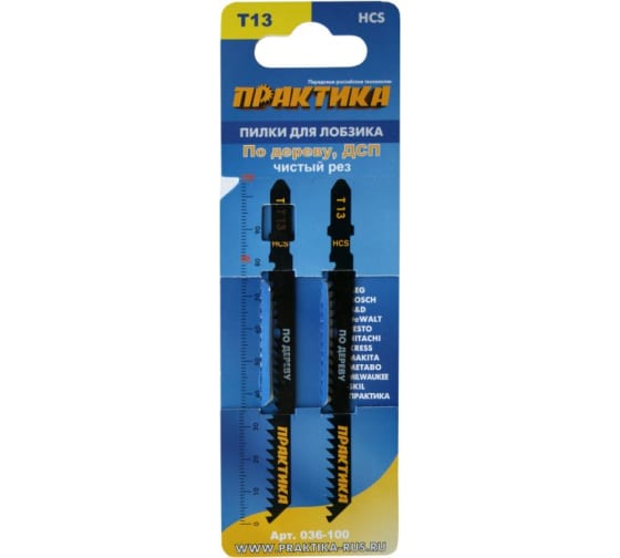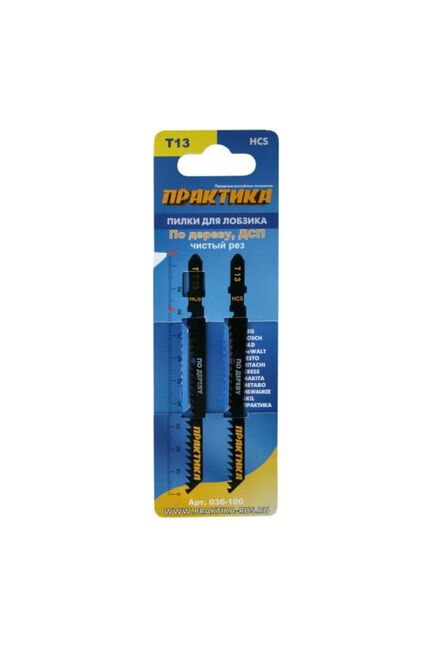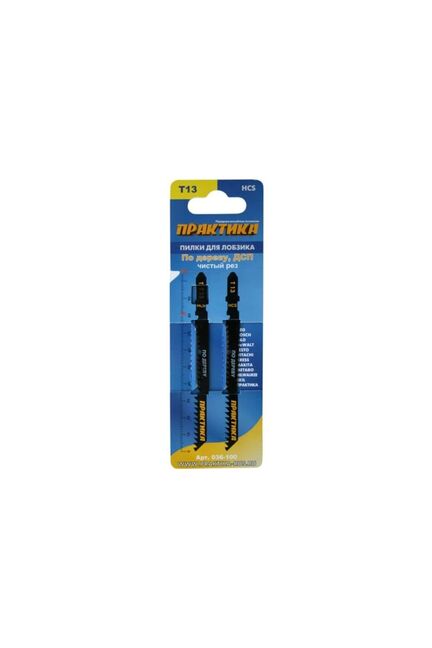 Пилки для лобзика по ламинату ПРАКТИКА тип T13 100х75 мм, реверсивные зубы, HCS, 2шт
