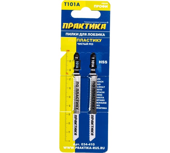 Пилки для лобзика по пластику ПРАКТИКА T101A 100*75 мм, быстрый рез, HSS, 2 шт в Комсомольск-на-Амуре