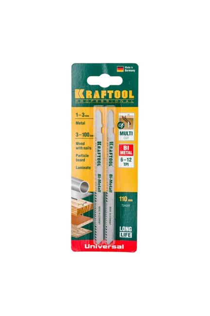 Пилки для лобзика универсальные KRAFTOOL T345XF, 110мм, 2шт.