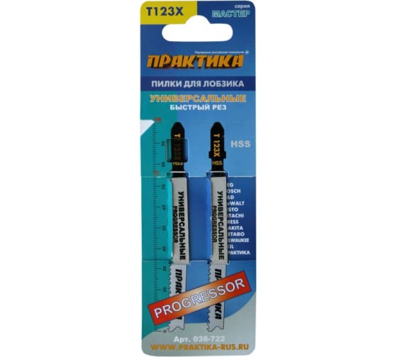 Пилки для лобзика универсальные ПРАКТИКА Прогрессор T123X 100*75 мм, грубый рез, HSS, 2 шт