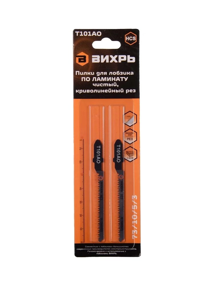 Пилки для лобзика ВИХРЬ Т101АО по ламинату,чистый,криволинейный рез 76х50мм, 2шт