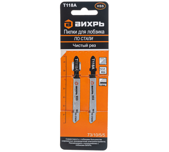 Пилки для лобзика Т118A Вихрь используются с электролобзиками для выполнения чистого пропила листового металла, толщиной от 1 до 3 мм. Пилки для быстрого и чистого распила тонкой стали, T-образный хвостовик, длина 76 мм, 2 шт. в комплекте, износостойкая конструкция.