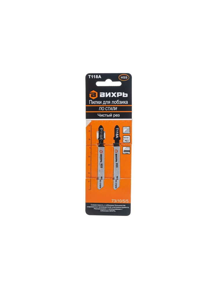 Пилки для лобзика ВИХРЬ Т118A по стали,чистый рез 76х50мм, 2шт