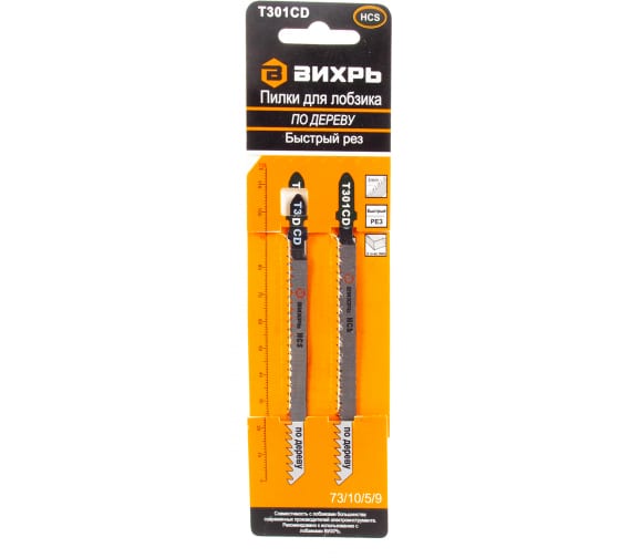 Пилки для лобзика ВИХРЬ Т301CD по дереву,быстрый рез 116х90мм, 2шт