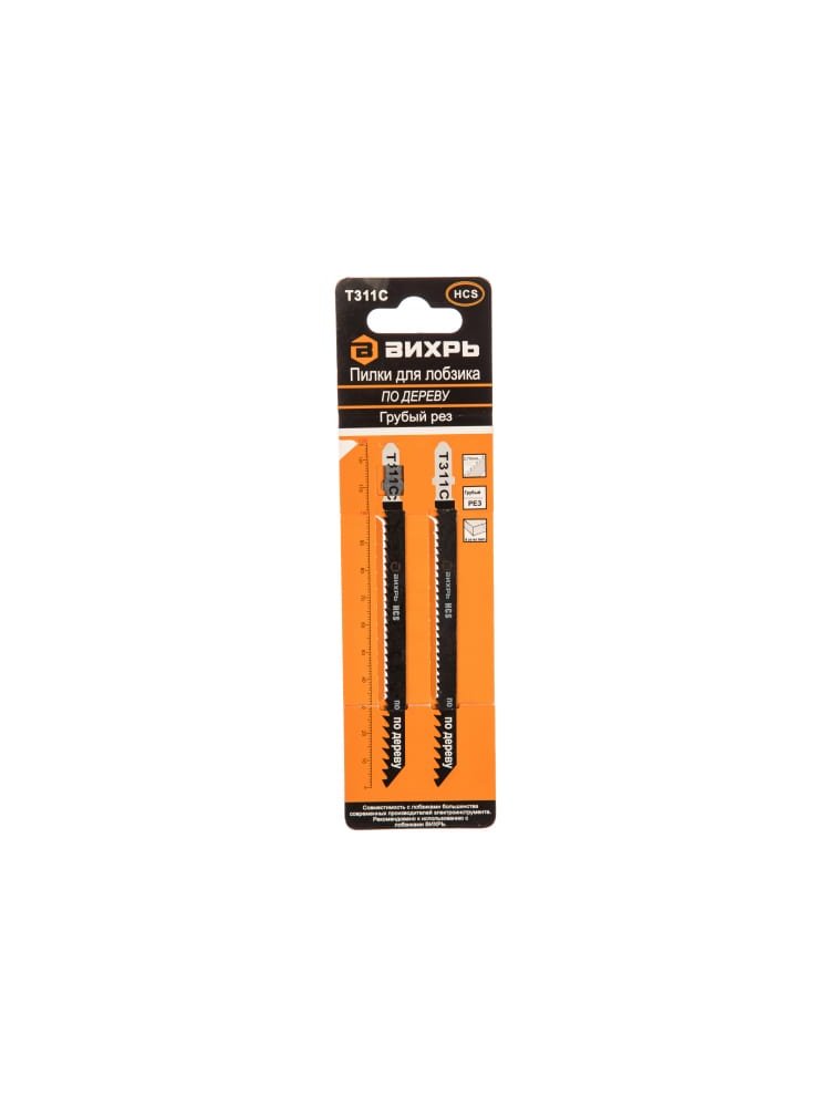 Пилки для лобзика ВИХРЬ Т311C по дереву,грубый рез 126х100мм, 2шт