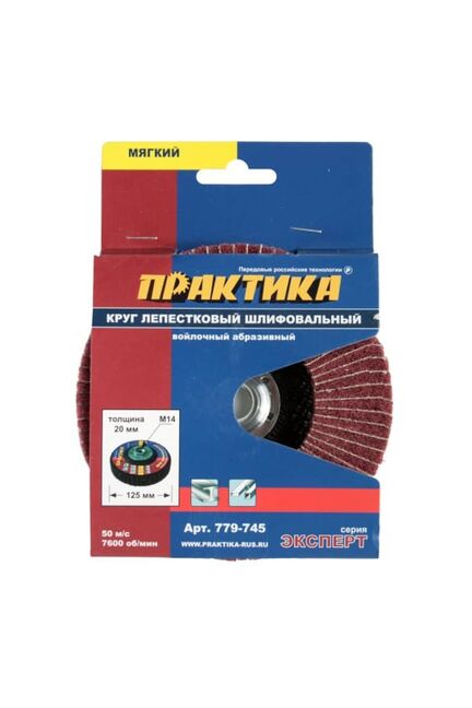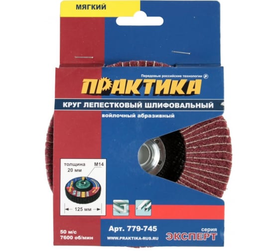 Круг лепестковый полировальный ПРАКТИКА 125*20 мм, М14, войлочный, абразивный, мягкий
