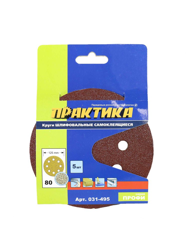 Круги шлифовальные ПРАКТИКА 8 отверстий 125 мм (Р80), 5шт