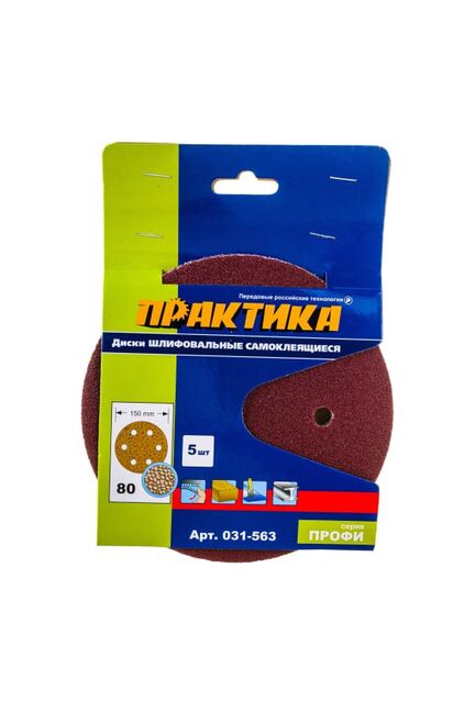 Круги шлифовальные ПРАКТИКА на липкой основе 6 отверстий, 150 мм (P80), 5 шт