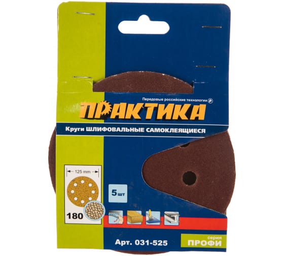 Круги шлифовальные ПРАКТИКА на липкой основе 8 отверстий, 125 мм (P180), 5 шт в Комсомольск-на-Амуре
