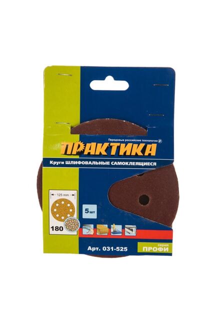 Круги шлифовальные ПРАКТИКА на липкой основе 8 отверстий, 125 мм (P180), 5 шт